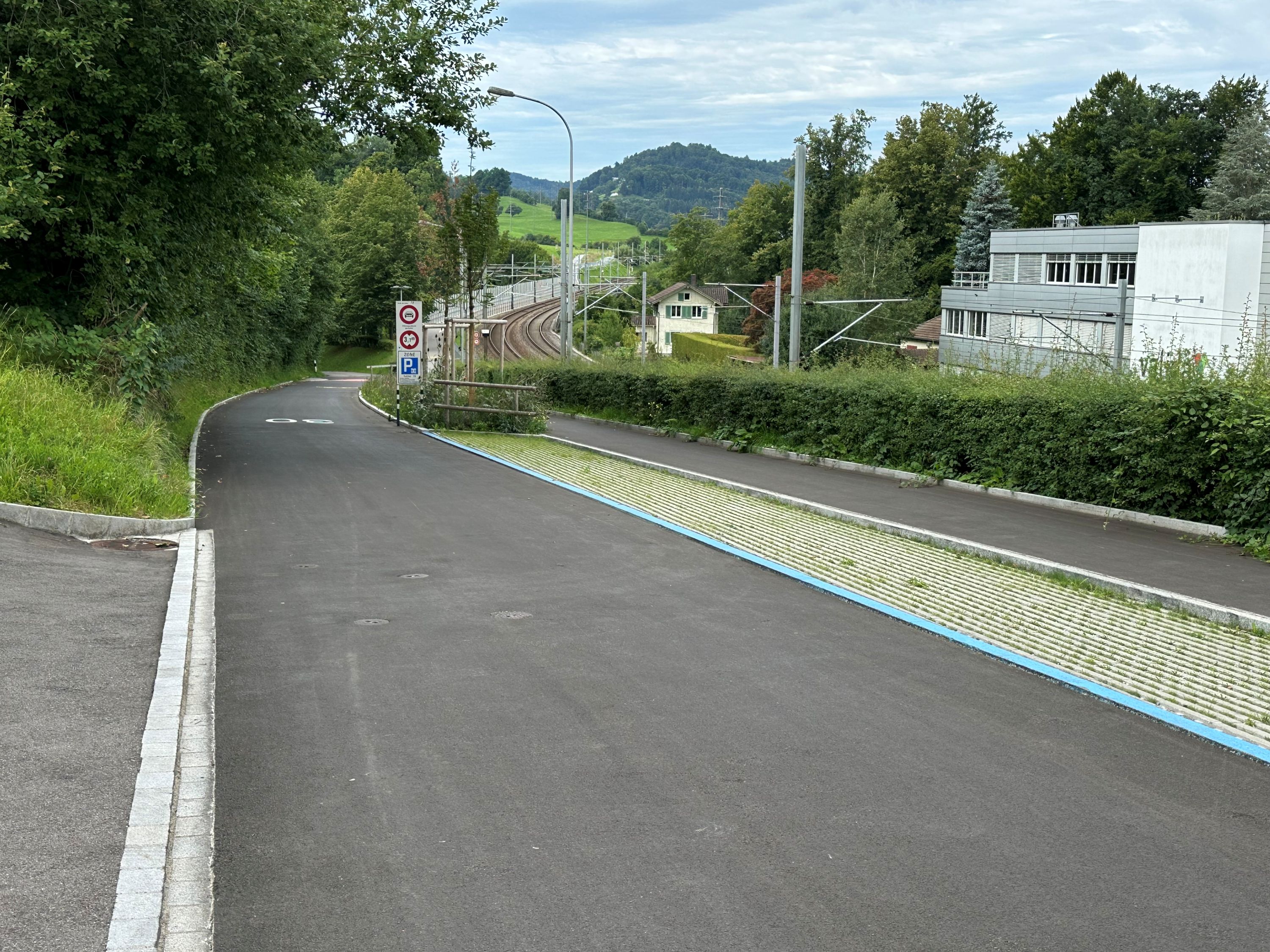 An der Lehnstrasse in St.Gallen wurden Parkplätze entsiegelt und mit Rasenlinern ausgeführt. Zusätzlich wurden 14 neue Bäume gepflanzt.